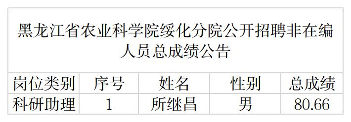 黑龙江省农业科学院绥化分院公开招聘非在编人员总成绩公告